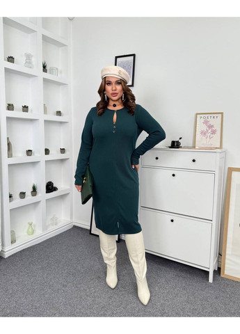 Сукня виготовлена з ангорової тканини, яка має фактуру в рубчик. Тканина має гарну розтяжність, враховуйте це під час підбору розміру. Завдяки своїй максі довжині та вільному фасону — гарно сідає по фігурі. Сукня з довгими рукавами без манжетів, плечовий шов знаходиться на природній лінії плеча. Сукня максі довжини А-силуетного крою, має круглий виріз горловини. По боках присутні дві кишені у шві.