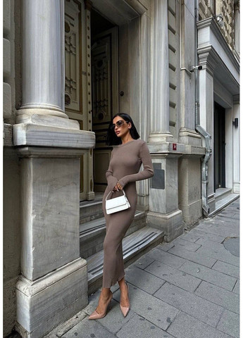 Драпірування з боків надає сукні особливої витонченості, підкреслюючи жіночні лінії тіла. Довжина міді надає сукні елегантності та універсальності, що підходить як для повсякденних образів, так і для особливих випадків. Рукави в сукні короткі, горловина кругла, краї низу прямі. Застібається виріб на довгу блискавку, розташовану на спинці, від горловини. Внизу також є розріз, який полегшує ходьбу. Параметри моделі 84*60*92 зріст 173