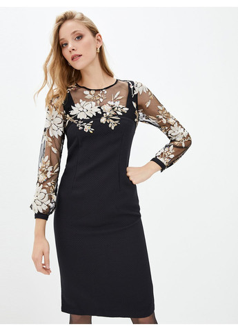 Витончена жіночна сукня стане універсальним рішенням як для зустрічі з друзями, так і для вечірки, роблячи ваш образ стильним, модним і вишуканим. Родзинкою цієї моделі є вставки з ніжного мережива на плечах і довгі рукави з манжетами на зав'язках. Прикраса входить в комплект.