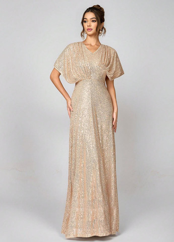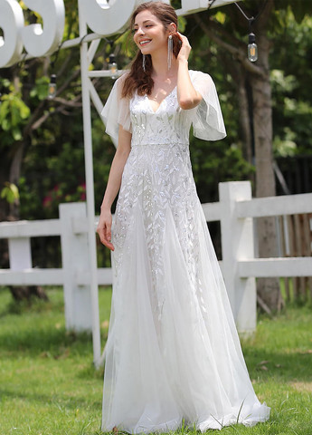 Коротка сукня з розшитою паєтками сітки. На сукні довгі рукави. Потайна блискавка ззаду, а також знизу на рукавах. Підкладка трикотажна.