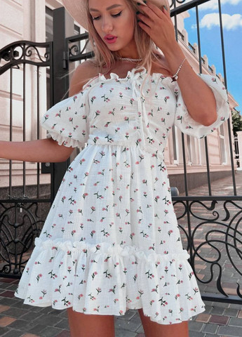 Ця жіноча міні-сукня з мусліну — справжнє втілення ніжності, грайливості та витонченого романтизму. Виготовлена з легкої, повітряної тканини в однотонному кольорі, вона вражає своїм об’ємним силуетом і деталями, які надають образу казкової чарівності.