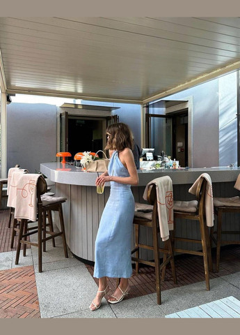 Довга сукня з відкритими плечима та спиною, виконана з льону, поєднує в собі витончену елегантність та природний комфорт. Це ідеальний вибір для спекотного літнього дня або вечірнього виходу, що приносить нотку вишуканості в будь-який образ.