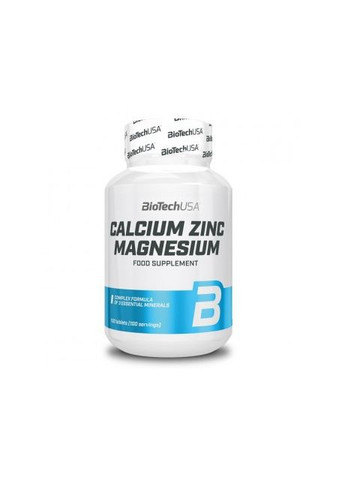 CALCIUM ZINC MAGNESIUM BIOTECH USAСпеціальна мінеральна добавка, комплекс мінералів для здоров'я кісток, суглобів і зв'язок. Препарат надає лікувальний і профілактичний вплив на суглобово-руховий апарат, сприяє регенерації кісткових і хрящових тканин, пришвидшує відновлювальні процеси після важких фізичних навантажень. Приймання цієї харчової добавки перешкоджає виникненню травм і істотно скорочує час посттравматичного відновлення. Добавка містить повний комплекс мінералів, необхідних для здорового функціонування суглобів, зв'язок, кісток і гарного стану зубів. Активними речовинами слугують мінерали на пряме самопочуття рухового апарату спортсмена (карбонат кальцію, фосфат кальцію, фосфор, цинк, магній та ін.). Застосування препарату корисне не тільки спортсменам, а й усім людям, які піклуються про здоров'я свого організму. Нормальне функціонування опорно-рухової системи гарантує гарне фізичне самопочуття, впевненість у своїх силах, комфорт і функціональність організму взагалі. Застосування цієї харчової добавки сприяє поліпшенню стану волосся, нігтів, шкіри, профілактику остеопорозу та захворювань серцево-судинної системи. Склад однієї порції (2 таблетки):Кальцій (карбонат, цитрат, малат) — 667 мг 83%Фосфор — 167 мг 23%Магній (оксид, цитрат) — 233 мг 62%Цинк (піколінат, цитрат) — 10 мг 100%Мідь (глюконат, цитрат) — 0,66 мг 66%Бор (цитрат) — 0,07 мг **Кремній (діоксид) — 13 мг ***Глютамінова кислота HCI — 67 мг ***Інгредієнти: Карбонат кальцію, наповнювачі (мікрокристалічна целюлоза, гідроксипропілметилцелюлоза), дикальція фосфат, оксид магнію, глютамінової кислоти гідрохлорид, антизлежувачі (стеарат магнію, стеаринова кислота), діоксид кремнію, оксид цинку, сульфат міді, борна кислота. Склад продукту на порцію на добу (3 таблетки):Як приймати: за рекомендацією фахівців компанії BioTech необхідно вживати щодня по 3 таблетки поєднуючи з основними прийманнями їжі (3 рази на день по 1 таблетці).