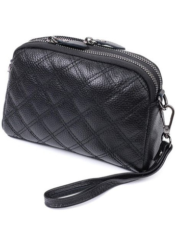 Колір: чорний; Матеріал: натуральна шкіра; Розмір (ШхВхГ, см): 19,5х12,5х7 см; Країна виробник: Китай. Бренд: Vintage. Особливості: блискавки; - всередині: потайна кишеня на блискавці в одному відділенні і кишеня відкритого типу у другому відділенні; - кишеня на блискавці, на тильній стороні; - фурнітура кольору темного срібла; - знімний кистьовий ремінь; - знімний шкіряний шкіряний шкіри високої якості. Виріб дуже зручний, можна носити на плечі, руках і на кисті, для цього є шкіряний ремінець, що знімається, і знімний кистьовий ремінь. На лицьовій стороні сумка прошита ромбами, що надає особливого шарму виробу. Модель доповнена фурнітурою кольору темного срібла. Аксесуар має два відділення, що закриваються на блискавці, дві кишеньки - одна на блискавці та одна відкритого типу всередині та одна кишеня на блискавці на тильній стороні. Якщо Вам потрібен варіант повсякденної сумки, яка чудово підійде як вечірня, то дана модель ідеальний варіант.