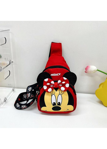 Дитяча сумочка - Міккі Маус з бантиком - стане милим доповненням до образу дитини і вмістить всі необхідні дрібниці. У такий аксесуар можна скласти помадку, цукерки, маленьку іграшку або зберігати свої перші заощадження. Сумка має один основний відділ, який закривається клапаном на металевій кнопці, тому дістати необхідне з сумочки не займе багато часу. Характеристики: - Застібка: клапан на металевій кнопці - Ремінець: знімний, регульований - Матеріал: штучна шкіра - Розміри (ВхДхШ): 11х13х5 см - Колір: червоний з чорним бантиком