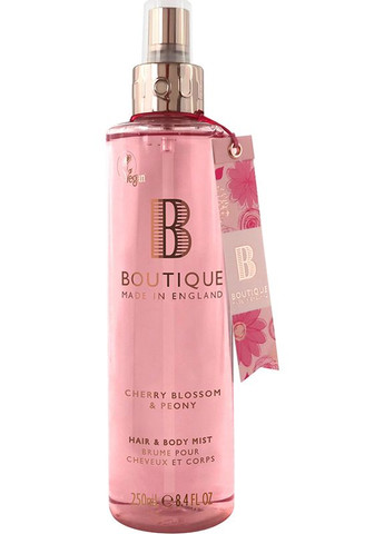 Міст для тіла і волосся Cherry Blossom & Peony Boutique – універсальний, парфумований засіб для тіла і волосся. Миттєво надає локонам і шкірі ніжного аромату вишневої квітки та півонії. Міст не тільки огортає приємним ароматом, а й ефективно піклується про стан шкіри та пасм. Інтенсивно живить і зволожує тіло, пом'якшує локони та надає їм природного блиску. Прибирає пухнастість. Спрей підходить для щоденного використання, ба більше, його можна наносити протягом дня як на тіло, так і волосся. Завдяки зручному дозатору його легко розпилити на необхідну зону, а компактний розмір спрею поміститься в будь-яку сумку. Переваги місту для тіла і волосся Cherry Blossom & Peony Boutique: Універсальний, парфумований засіб для тіла і волосся Миттєво надає ніжного аромату вишневої квітки та півонії Ефективно піклуватися про стан шкіри та пасм Інтенсивно живить і зволожує тіло Пом'якшує локони та надає їм природного блиску Прибирає пухнастість Компактний розмір і зручний дозатор Спосіб застосування: розпилити спрей на шкіру і волосся з невеликої відстані, 15-20 сантиметрів. Міст можна використовувати щодня і протягом дня.