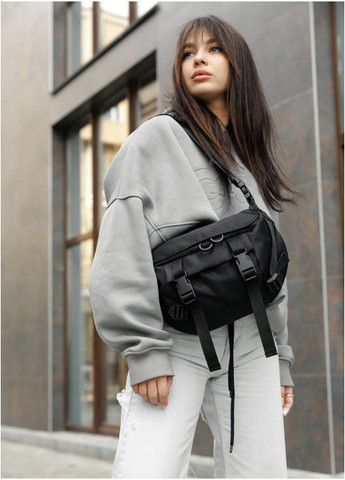 Основні характеристики - Розмір: 14×21,5×8,5 см. - Колір: чорний - Основне відділення на замку із внутрішньою кишенею. - Передня кишеня-сітка на замку. - Знімний ремінь з застібкою фастекс. - Резинка збоку, яку можна декорувати брелками. - Дві петлі на задній частині сумки у які можна продіти ремінь.
