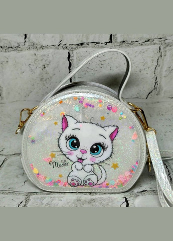 Гарна дитяча сумочка "Котик", модель з рідиною та блискітками. Чудовий подарунок для дівчинки! Колір - кремовий Розмір - 15х13х5 см Матеріал - еко-шкіра лакова Відділення - 1, підкладка текстиль Ручка - 1 шт Шлейка - 1 шт (регулюється від 60 до 110 см)