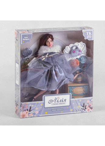 З чудовою лялькою "Лілія" TK-13211 з колекційної серії "Зоряна принцеса" кожна маленька дівчинка зможе повірити в казку і поринути в чарівний світ чудес, а також придбати нову лялькову подружку, яка супроводжуватиме її у всіх фантастичних пригодах!Витончені риси обличчя лялькової красуні з перших секунд зачарують кожну маленьку дівчинку. Виразні карі очі, акуратний кирпатий носик і біла широка посмішка надають їй особливого шарму і захоплення. Довге, шовковисте волосся акуратно укладене в зачіску. Їх можна розчісувати та моделювати різні стильні зачіски.Зоряна принцеса одягнена воістину в розкішне королівське вбрання. Пишна, вечірня сукня виконана в сріблястих відтінках і вишукано прикрашена блискучими паєтками, обшита ніжною атласною стрічкою, і доповнена перламутровими перлами. На ніжках взуті модні чорні босоніжки. А завершальним аксесуаром є м'яка, пухнаста накидка на плечі, виготовлена зі штучного хутра.Також із чудовою лялькою в комплект входять додаткові аксесуари у вигляді стильної сумочки, гребінця для волосся та вази з гарними квітами.Лялечка виконана з високоякісного пластику і має безліч точок артикуляції, руки згинаються в ліктях та зап'ястях, а ноги в колінах.Зріст ляльки – 30 см. * Характеристики та комплектація товару можуть змінюватися виробником без повідомлення Розмір упаковки: 28 см × 6 см × 32 см Упаковка: Коробка Вік: від 3 років
