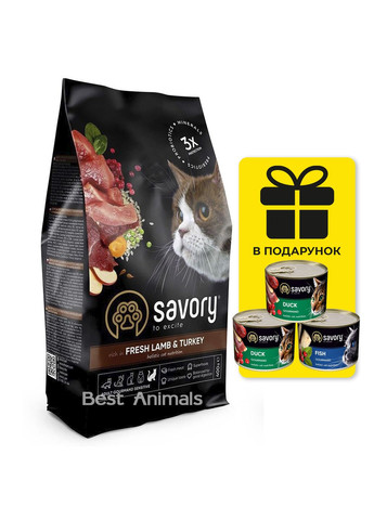 Повнораційний сухий корм класу холістик для дорослих котів з чутливим травленням - ексклюзивна рецептура корму була розроблена досвідченими європейськими фахівцями з харчування домашніх улюбленців. Їм вдалося, використовуючи холістичний підхід, створити біологічно відповідний, здоровий раціон для котів, який є максимально корисним та поживним, і при цьому смачним. Сухий корм Savory спеціально розроблений для вихованців з чутливим травленням, оскільки інше харчування, найімовірніше, викличе у них дискомфортний стан. Це джерело корисного та смачного раціону, що містить у собі необхідні корисні мікроелементи та вітаміни. Ситний сухий корм є натуральним продуктом, що вигідно відрізняється витонченим смаком свіжої індички та ягняти. Крім цього, раціон містить у своєму складі всі необхідні для здорового харчування фрукти, овочі та ягоди. У результаті правильно розраховане дозування компонентів в сухому кормі забезпечить домашнього улюбленця потрібними поживними речовинами. Можливість виникнення алергічних реакцій знижена до мінімуму. Для котиків з особливо чутливим травленням включені дієтичні протеїни, які легко засвоюються організмом. Збалансований та поживний склад не містить холестерин. Сухий корм насичений вітамінами, корисними мікроелементами, включаючи білок і лецитин. Переваги: свіже м'ясо ягняти і дегідратоване м'ясо індички - джерело легкозасвоюваних, цінних білків; гіпоалергенний склад корму; комплекс вітамінів, клітковини та мінеральних речовин нормалізують роботу кишківника; здорове функціонування мозку та гострота зору; шерсть та шкіра тварини в ідеальному стані; натуральний антиоксидант ефективно бореться з вільними радикалами; природний захист та відновлення пошкоджених клітин організму; здорова сечовивідна система та мікрофлора кишківника; суперфуди поліпшують роботу органів ШКТ; комплекс пребіотиків, пробіотиків, мінералів – для здорового травлення та зміцнення імунітету; хондропротектори дозволяють правильно сформуватися суглобам, захищаючи та зміцнюючи їх; ягідні, фруктові та овочеві добавки у складі корму містять антиоксиданти, флавоноїди та вітаміни; підтримує оптимальну вагу вихованця; без штучних барвників та ароматизаторів (використовується підхід «NafNac»). Особливості: ягня - один з найніжніших і гіпоалергенних видів м'яса. Легко засвоюється організмом. Без вмісту холестерину. М'ясо багате на лецитин, вітаміни та мікроелементи; індичка – дієтичне, високобілкове м'ясо. Легко засвоюване, містить життєво необхідні мінерали: селен, цинк, натрій, фосфор, магній, калій та вітаміни групи B (В3, В6, В12); зелений горох і рис - зелений горошок містить корисні амінокислоти: цистин, метіонін, триптофан. Він має низький глікемічний індекс. У комбінації з рисом такий протеїн засвоюється максимально ефективно; гарбуз - продукт дієтичного харчування, джерело клітковини, вітамінів та мінеральних речовин. Цілюще впливає на роботу кишківника; сушений антарктичний криль - корисний для очей (загострює зір), мозку, шкіри та шерсті, тому що містить у собі такі важливі кислоти, як ейкозапантаєнову та докозагексаєнову; сушена лохина - ефективно бореться з вільними радикалами. Це природний антиоксидант, що захищає та відновлює клітини організму; сушена журавлина - колодязь біофлавоноїдів та антиоксидантів, що 