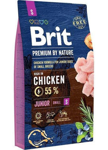 Повноцінний корм із куркою для цуценят та молодих собак (1-12 місяців) дрібних порід (1-10 кг). Також підходить для вагітних собак та годуючих. З високим вмістом курки. Підтримка імунітету та здоров'я Фрукти, трави та куркума містять багато вітамінів і позитивно впливають на імунну систему. Маннанолігосахариди та фруктоолігосахариди підтримують оптимальну флору кишечника. Оптимальний розвиток тіла та м'язів Високий вміст сушеної курки без кісток - природне джерело білка, що легко засвоюється, для оптимального росту і розвитку м'язів. Здоровий розвиток скелета Колаген, ракоподібні та зеленогубі молюски мають високий вміст хондропротекторів та підтримують здоровий розвиток суглобів та хрящів. Збалансований вміст кальцію та фосфору для здорового розвитку кісток та зубів. Склад: курка 55% (дегідратована курка 30%, курка без кісток 25%), курячий жир (консервований токоферолами), овес, пшениця, лососева олія (2%), кукурудза, сушені яблука, гідролізована куряча печінка, пивник глюкозаміну, 260 мг/кг), хрящі (джерело хондроїтину, 180 мг/кг), трави та фрукти (гвоздика, цитрусові, розмарин, куркума, 150 мг/кг), маннанолігосахариди (150 мг/кг), фруктооліго0 (Yucca schidigera) (100 мг/кг), сушена ромашка (90 мг/кг), зеленогубі молюски (джерело глюкозаміногліканів 60 мг/кг), сушена чорниця (60 мг/кг). Протеїн 32% Жир 20% Енергетична цінність: 4050 ккал/кг Поради щодо годування: Подавайте корм сухим або зволоженим теплою водою. Для цуценят щоденний раціон, що рекомендується, зазначений у таблиці годівлі, повинен бути розділений на 2-3 рівні частини протягом дня. Якщо Ви вперше годуєте Brit Premium, використовуйте менші порції та змішуйте їх із попереднім кормом, поступово збільшуючи частку Brit Premium. Завжди слідкуйте за наявністю свіжої питної води. Аналітичний склад: сирий протеїн 32.0% жир 20.0% волога 10.0% сира зола 6.8% сира клітковина 2.0% кальцій 1.5% фосфор 1.1% Омега 3 0.3% Омега 6 2.7 % Добавки на 1 кг: вітамін A (3a672a) 20 000 МО вітамін D3 (E671) 1 200 МО вітамін E (α-токоферол) (3a700) 500 мг біотин (3a880) 0.6 мг хлорид холіну(3a890) 600 мг хелат цинку гідрату амінокислот(3b606) 90 мг хелат заліза гідрату амінокислот(E1) 80 мг хелат марганцю гідрату амінокислот(E5) 35 мг йод(3b201) 0.65 мг хелат міді гідрату амінокислот(E4) 15 мг Органічна форма селену (3b8.10) 0.2 мг Містить антиоксиданти схвалені в ЄС: екстракти токоферолу з олії (1b306), аскорбілпальмітат (1b304) та екстракт розмарину.