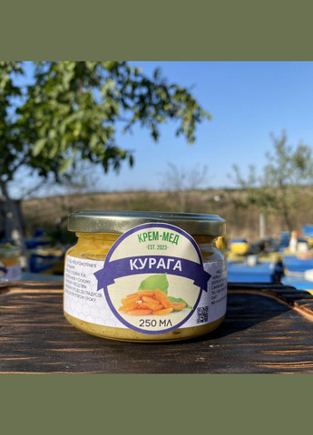 Такий десерт поєднує дуже приємний солодко-кислий смак сушеного абрикосу (кураги) і солодкого меду🍯. Смак Кураги яскраво виражений і відтіняється лагідною, зовсім не приторною солодкістю крем-меду. КРЕМ-МЕД з Курагою🍯 має пастоподібну консистенцію зі шматочками перемеленого сухофрукту, яка схожа на вершкове масло, яке нещодавно витягли з холодильнику. Досить легко набирається на ложечку і можна навіть намастити на хліб чи печиво чи крекер. Зберігання: при температурі до +25 градусів у сухому місці без потрапляння сонячних променів, у щільно закритій тарі.
