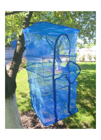 Сітка для сушіння – знахідка для рибалок, садівників, грибників. Висушити відразу велику кількість продуктів, не використовуючи електричних приладів, можна в простій і водночас продумано зробленій сушарці. Продукти сохнуть рівномірно, не потрібно їх перевертати, так на трьох поличках можна все розкласти вільно. Дверцята в сушарку надійно застібаються на блискавку. Блискавка розстібається з двох боків. Зверху сушарки є мотузка для підвішування. Компактно складається, не займає багато місця під час транспортування. Характеристики: Матеріал: Поліестер Можна сушити м'ясо, ягоди, фрукти, гриби; Закривається на блискавку, що розстібається з двох боків; Кількість відсіків: 3+ відділ для піддону; Колір синій; Висота: 64 см Довжина: 45 см Ширина: 45 см