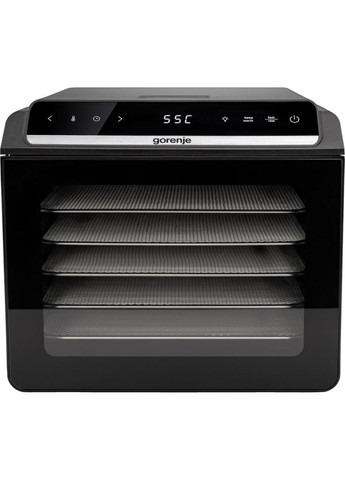 Тип керування: Сенсорне Потужність: 450 Вт Кількість ярусів: 5 шт Регулювання температури: 35 - 70 °С Електросушарка для продуктів дозволить висушити хліб, печиво, рибу, фрукти, трави, м'ясо, гриби, макаронні вироби й овочі зі збереженням усіх корисних властивостей. GORENJE FDK 500 GCW з 5 круглими лотками діаметром 31 см, які дозволяють рівномірно висушувати продукти на всіх рівнях. Лотки легко та просто замінюються. Термостат дозволяє регулювати температуру в межах 35-70 ˚C. Після завершення програми сушарка автоматично вимкнеться завдяки наявності цифрового таймера. Керування здійснюється за допомогою кнопкової панелі з дисплеєм. Мінімальна програма роботи становить 30 хвилин, максимальна 19,5 годин. Нековзні ніжки забезпечують стійке розташування пристрою.