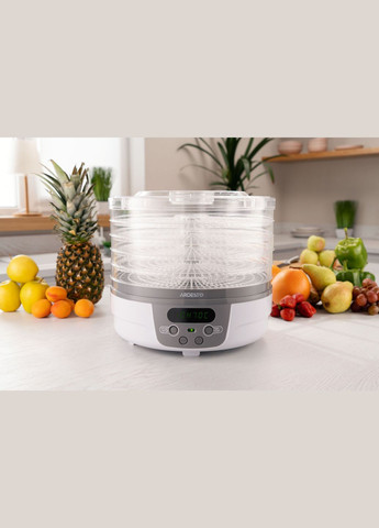 СУШКА ДЛЯ ГРИБІВ,ОВОЧІВ І ФРУКТІВ 450 ВТ ТЕМПЕРАТУРНИЙ КОНТРОЛЬ | ВИСОКА ПОТУЖНІСТЬ | Таймер | 5 ЛОТКІВ | РУХОВИЙ | СВІТЛОДИОДНИЙ ДИСПЛЕЙ | СУЧАСНИЙ ДИЗАЙН | BPA FREE | ДЛЯ ФРУКТІВ, ОВОЧІВ, ГРИБІВ, ТРАВ, М'ЯСА БАГАТОФУНКЦІОНАЛЬНА СУШКА ДЛЯ ПРОДУКТІВ - БАГАТО ЗАСТОСУВАНЬ В ОДНОМУ ПРИЛАДІ. Осінній період - ідеальний час для того, щоб запастись сушеними грибами. У цей час вони удосталь ростуть у лісах. Сушарка для грибів – це прилад, який допоможе швидко висушити зібраний урожай. Сушарка для продуктів також дозволить сушити фрукти, овочі, трави та інші продукти харчування цілий рік! ПАРАМЕТРИ: Потужність: 450 Вт Місткість: 12 л Електроживлення: мережа 220-240в 50/60гц Кількість рівнів/лотків: 5 (з можливістю розширення) Контроль температури: 8 ступенів (35-70 ° C) Висота основи: 10,5 см Довжина шнура живлення: 130 см Розміри хв: 21,5 x 32 x 25,0 см Габарити макс: 27,5 x 32 x 25 см Розмір упаковки: 36,5 x 30 x 25,5 см. Маса пристрою: 2,4 кг Колір білий Захист від перегріву: ТАК Модульна конструкція: ТАК Вбудований таймер: ТАК Світлодіодний дисплей: ТАК BPA FREE: ТАК Двостороння конструкція лотків Двостороння конструкція лотків регулює відстань між ситами. Завдяки такій конструкції при зберіганні прилад займає набагато менше місця. Регулювання положення сит здійснюється шляхом їхнього повороту в горизонтальній площині на 180 градусів. Зберігання - сита укладені впритул один до одного. Висота приладу становить 21,5 см. Внутрішня відстань між ситами – 1,5 см. Сушіння - сита розташовані на відстані один від одного. Висота приладу 27,5. Внутрішнє відстань між ситами 3 див. Як працює сушка для грибів? Сушіння - один із способів консервування продуктів, що дозволяє зберегти їх надовго. Висушуючи гриби, овочі та фрукти самостійно, можна бути впевненим у тому, що вони якісні та не містять хімічних добавок. Домашня сушарка для грибів працює за принципом потоку теплого повітря, яке подається з нижньої частини приладу. Повітря подається на всі "поверхи" сушарки і повинне розподілятися рівномірно. МОДУЛЬНА КОНСТРУКЦІЯ верхня кришка з матового пластику двосторонні прозорі сита нагрівальний елемент декоративний елемент із точкового алюмінію панель управління з електронним керуванням та світлодіодним дисплеєм електронна ручка управління неслизька основа СИТА - ОСНОВНІ ХАРАКТЕРИСТИКИ: 5 штук у комплекті двосторонні сушіння великої кількості продуктів за один раз 100% прозорість сит дозволяє спостерігати за процесом сушіння, не відкриваючи кришку та не втрачаючи тепло. можливість використання будь-якої кількості сит для сушіння вільна циркуляція повітря між усіма ярусами завдяки наявності отворів ефективне та рівномірне сушіння продуктів. Необмежена місткість – модульна конструкція сушарки дозволяє збільшити її місткість та адаптувати пристрій до ваших потреб (для збереження найкращих параметрів сушіння рекомендується збільшити місткість максимум до 10 сит). Одне додаткове сито підвищує ємність сушарки на 2,4 л. ПАНЕЛЬ УПРАВЛІННЯ - сушіння відповідно до ваших потреб СУЧАСНИЙ СВІТЛОДІОДНИЙ ДИСПЛЕЙ Інтуїтивно зрозуміла панель керування забезпечує просте і зручне керування, а дисплей, що легко читається, відображає налаштування. Світлодіодний дисплей - забезпечує простоту управління та надає сучасного вигляду: Кнопка увімкнення/вимкнення кнопка встановлення часу/температури кнопка пуску/зупинки Св