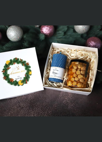 Подарунковий набір №24 Чудовий невеликий подарунок до Нового Року у коробочці з святковою наліпкою. У наборі: 8.5 см воскова свічка 240 г волоський горіх з медом, або крем-мед Наповненням такого подарункового боксу до Нового року є продукція українського бренду сімейної пасіки, та має натуральну складову. Розмір 18*12*8 см