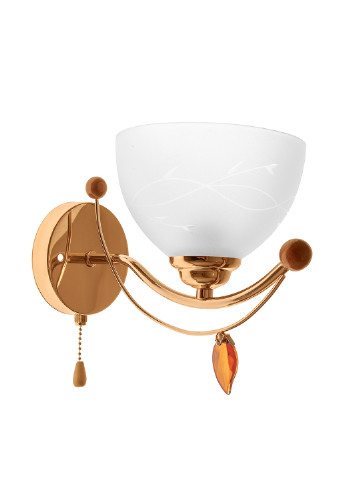 класичне бра, наповнене духом минулих епох, повідає вам про таємниці минулого і виграшно підкреслить дизайн інтер'єру спальні, вітальні або передпокою у вашій міській квартирі або заміському будинку. Бра виготовлено з металу і скла. Його конструкція складається з напівкруглого скляного підстави, до якого за допомогою фігурного власника прикріплений патрон для лампи, поміщений в скляну тарілочку. Зовні конструкція даного світильника нагадує старовинний канделябр, ось тільки замість воскової свічки джерелом світла служить одна електрична лампочка з цоколем Е14 потужністю 40 Вт. Світильник може похвалитися багатим дизайном. Прикрашений він скляними підвісками з гранованими камінчиками кольору шампань. Дане бра зробить атмосферу в домі затишною, святковою. Так, що запрошуйте гостей і влаштовуйте душевне чаювання. Ширина: 120 мм, висота: 240 мм