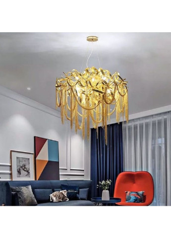 Висота люстри, см: 40 мінімальна 140 максимальнаШирина люстри, см: 60Діаметр/довжина, см: 60 Матеріал плафона: Скло Матеріал корпусу: Метал Колір плафону: Прозорий Колір корпусу: ЗолотоКількість джерел світла: 12Потужність, Вт д/у: НіНічне підсвічування: Ні Виробник: Китай