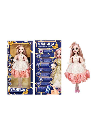 Лялька інтерактивна Розумниця F16B-02 Рухливі суглоби,Діалог,Пісні,Казки,Жарти Англійська мова, Енциклопедія знань,Колискові На грудях ляльки розташована кнопка для припинення гри. Завдяки 13 Рухомим суглобам, плечам, ліктям, зап'ястям, стегон колін гомілкостопа і шиї лялька може приймати красиві витончені пози. Енциклопедія знань Ляльку не дарма звуть Розумниця-вона знає про все Упаковка: коробка Кількість в упаковці шт:16 шт Увімкнення, гучніше тихіше, назад вперед, музика Якщо попросити ляльку заспівати пісню, вона заспіває одну з милих дитячих пісень, які вона знає. Можна їх розучити і співати з нею разом! Лялька знає кілька дивовижних історій, яка вона з радістю розповість своїй маленькій подружці. Жарти якийсь дівич-вечір без веселих і радісного сміху! Наша лялька любить жартувати та неодмінно розсмішить свою подругу. Англійська Справу час - потіху годину. Лялька любить не тільки розважатися, але і з радістю вчить англійську мову. на світі! Задавайте їй запитання та слухайте її розумні відповіді на них. розмір 30*65см
