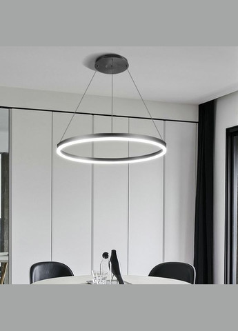 Сучасна підвісна люстра в чорному металевому корпусі. Розмір кільця 60 см, висота і кут нахилу кільця в світильнику регулюється і трансформується завдяки тросам. Мінімальна висота 20 см, максимальна висота 190 см, потужність 60 Вт, вбудовані світлодіоди на 3 колірних режиму (тепле, нейтральне денне, холодне), основа 25х5 см, кріплення хрестовина 22 див. Світлодіодні люстри додають у ваш інтер'єр стильність та комфорт. Світлодіодна люстра при будь-якій напрузі світить з однаковою яскравістю і не боїться незначних стрибків напруги. Світлодіодні стельові люстри для квартири або комерційного приміщення не нагріваються під час інтенсивної експлуатації і зберігають первісний вигляд протягом усього терміну служби. На всі моделі виробник дає гарантію як доказ якості. Світлодіодні LED люстри не завдають шкоди здоров'ю користувача та навколишньому середовищу. У люстрах налагоджено пасивну систему відведення тепла, вони не нагрівають корпус пристрою, тому відмінно підходять для натяжних стель, настільки чутливих до нагрівання. Конструкція світильників виготовлена з екологічно чистих матеріалів, які не виділяють токсинів під час експлуатації. LED люстри - це дуже економічний на сьогоднішній день варіант освітлення, оскільки з кожним роком питання економії електроенергії стають все актуальнішими. Висота, см: 35 Ширина, см: 60 Діаметр/довжина, см: 60 Матеріал плафона: Акрил Матеріал корпусу: Метал Колір плафона: Білий Колір корпусу: Чорний Кількість джерел світла: вбудоване LED освітлення Потужність, Вт (макс): 60 (споживана) Тип патрона: Немає Пульт д/к: Немає Нічне підсвічування: Немає Виробник: Китай