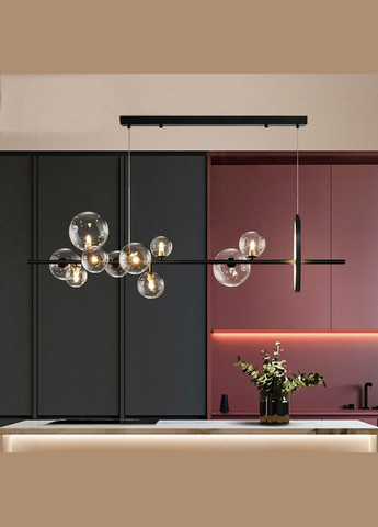 Люстра з прозорими плафонами діаметром 8 см, 10 см, 12 і 15 см з хаотичним розташуванням і світлодіодним кільцем потужністю 15 Вт. Корпус металевий золотого або чорного кольору завдовжки 120 см. Кріплення монтажна планка 18 см Підвісні люстри - дуже популярний вид стельових світильників для приміщень із середньою або високою стелею. Ці світильники підійдуть для кухні, передпокою та ванної кімнати, для спальні та просторого залу, для кафе, ресторану та будь-якого громадського закладу. Підвіси прості за формою та зручні у догляді, також оснащені механізмом, що дозволяє змінювати висоту. Висота, см: 30 Ширина, см: 30 Діаметр/довжина, см: 120 Матеріал плафона: Скло Матеріал корпусу: Метал Колір плафона: Прозорий Колір корпусу: Золото або чорний Кількість джерел світла: 10 Потужність, Вт (макс): 5 Тип патрона: G9 Пульт д/к: Немає Нічне підсвічування: Немає Виробник: Китай