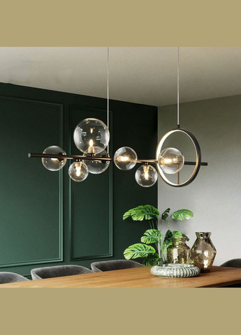 Люстра з прозорими плафонами діаметром 8 см, 10 см, 12 і 15 см з хаотичним розташуванням і світлодіодним кільцем потужністю 15 Вт. Корпус металевий золотого або чорного кольору завдовжки 90 см. Кріплення монтажна планка 18 см Підвісні люстри - дуже популярний вид стельових світильників для приміщень із середньою або високою стелею. Ці світильники підійдуть для кухні, передпокою та ванної кімнати, для спальні та просторого залу, для кафе, ресторану та будь-якого громадського закладу. Підвіси прості за формою та зручні у догляді, також оснащені механізмом, що дозволяє змінювати висоту. Висота, см: 30 Ширина, см: 30 Діаметр/довжина, см: 90 Матеріал плафона: Скло Матеріал корпусу: Метал Колір плафона: Прозорий Колір корпусу: Золото або чорний Кількість джерел світла: 7 Потужність, Вт (макс): 5 Тип патрона: G9 Пульт д/к: Немає Нічне підсвічування: Немає Виробник: Китай