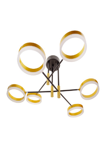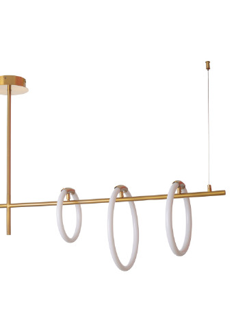 Світлодіодна люстра WBL-56C/3 72W WW+NW+CW G – це сучасний модний світильник зі стильним, оригінальним дизайном золотистого кольору. Модель підійде для спальні, вітальні, передпокою або кухні з будь-якою висотою стель. Має конструкцію, що включає три кільця-плафони різного діаметра, які кріпляться до основи люстри. Кільця та окружність основи оснащені вбудованими високоякісними світлодіодами загальною потужністю 72 Вт, що можуть випромінювати світло різної колірної температури: тепле, нейтральне, холодне. Світлодіоди генерують світловий потік з віддачею 80 лм/Вт. ЛЕД джерела дуже економні й мають тривалий термін експлуатації. Люстра створює потужний світловий потік з високим індексом передачі кольору (> 80Ra). Її габаритні розміри складають: висота – 270 мм, ширина – 335 мм, довжина – 400 мм. Ступінь захисту корпусу від потрапляння всередину пилу та вологи – ІР20. Призначена для використання в мережі змінного струму з номінальною напругою 220 В. До стелі фіксується за допомогою монтажної планки. Дизайн люстри робить модель відповідною для інтер'єрів, оформлених в різних стилях.
