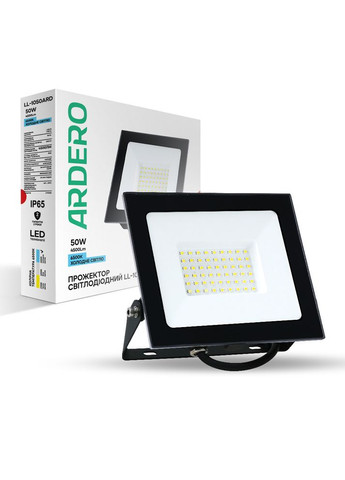 Світлодіодний прожектор Ardero LL-1050ARD 50 Вт 6500 K IP65 чорний Світлодіодний прожектор Ardero LL-1050ARD — це частина лінійки сучасних світлодіодних прожекторів LL-1ХХХARD, що поєднують високу надійність, ефективність і довговічність. Особливості та переваги прожектора Ardero LL-1050ARD: Надійна конструкція: Прожектор має міцний алюмінієвий корпус і розсіювач із загартованого скла, що забезпечує захист від зовнішніх впливів. Високий рівень захисту: Завдяки класу захисту IP65 прожектор стійкий до пилу та вологи, що робить його ідеальним для використання на вулиці за будь-яких погодних умов. Прожектор може працювати в широкому діапазоні температур від -40 до +35 °C. Якісні світлодіоди: У прожекторі використовуються ефективні світлодіоди нового покоління, стійкі до виникнення світлових дефектів, що гарантує довговічність і стабільну роботу світильника. Економія енергії: Прожектор дає змогу заощаджувати понад 80% енергії, порівнюючи з традиційними галогенними прожекторами, завдяки використанню світлової технології з енергоефективністю 80-90 лм/Вт. Світлодіодний прожектор Ardero LL-1050ARD — це надійне й економне рішення для освітлення зовнішніх територій, що поєднує в собі високу якість матеріалів і передові технології. Технічні характеристики можуть змінюватися залежно від партії.