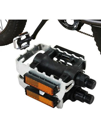Педалі для велосипеда – міцні та функціональні, ідеально підходять для міських і прогулянкових байків. Виготовлені з металу та пластику, вони витримують інтенсивні навантаження та забезпечують довготривалу експлуатацію. Характеристики: Розміри: 11см х 7см х 1,4 см Матеріали: міцна конструкція з металу та пластику. Діаметр різьби: 14 мм, стандартний для більшості велосипедів. Катафоти: вбудовані для підвищеної видимості у темний час доби. Комплект забезпечує надійний контакт із взуттям, що підвищує контроль та безпеку під час руху.
