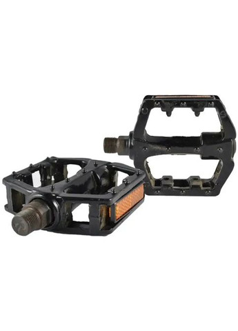 Від педалей залежить якість їзди, адже вони є важливою частиною трансмісії. Дана модель має зручну форму та підходить до більшості видів байків, але особливо буде актуальна та комфортна для міських та прогулянкових велосипедів. Педалі виконані з міцного та зносостійкого пластику та металу, стійкого до навантажень та механічних пошкоджень. Вісь з різьбленням зроблена з якісної сталі. Діаметр різьблення складає 14 мм, що є стандартом для більшості велосипедів. З двох сторін є катафоти, щоб забезпечити хорошу видимість велосипедиста на дорозі в темний час доби, також це дозволяє позначити габарити транспортного засобу. Характеристики: Розмір педалі: 8,5 см х 9 см; Розмір різьби: 9/16; Підшипники: насипні; Матеріал платформи: алюміній; Колір: чорний;