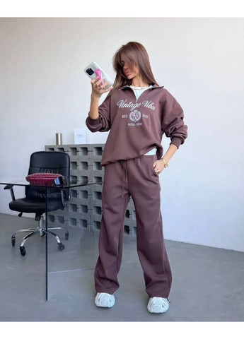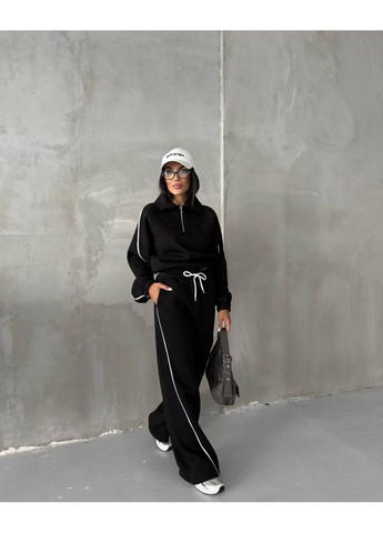 Костюм виконаний у вільному oversize крої, що дарує повну свободу рухів та виглядає трендово. Светр з горловиною на блискавці створює акцент, а прямі штани можна носити як у класичному варіанті, так і з підтяжкою на резинці внизу. Модель чудово підходить як для прогулянок, так і для повсякденного носіння.