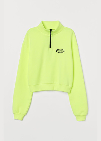 Укорочений світшот з довгим рукавом із бавовни. Комір-стійка, на блискавці зверху, занижена лінія плеча. Рельєфна окантовка на манжетах та по нижньому краю. М'яке начісування всередині. У виробі можливе пошкодження бирки.