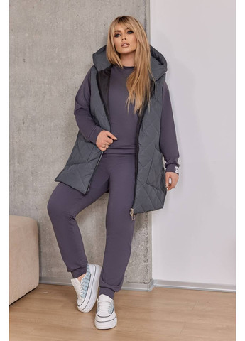 🛑🛑🛑ЗАМІРИ ДИВІТЬСЯ В ОПИСІ Костюм трійка Кольори: чорний, графіт, смарагд , пильна троянда ,шоколад Матеріал: Костюм-двохнитка високої якості; Жилетка-плащовка «Еммі» Наповнювач жилета: синтепон щільністю 150. Розміри: 50-52, 54-56, 58-60, 62-64 ЗМІРИ КОФТА Розмір 50-52/ 54-56/ 58-60 ОГ - 110 см/ 118 см/ 128 см Довжина - 67 см/ 68 см/ 69 см Довжина рукава від плеча- 62 см/ 63 см/ 64 см ШТАНИ ОБ - 112 см/ 120 см/ 130 см Довжина по зовнішньому шву - 100 см/ 102 см/ 103 см Пояс - 70 см/ 74 см/ 78 см ЖИЛЕТКА ОГ - 120 см/ 128 см/ 136 см ОБ- 126 см/ 136 см/ 146 см Довжина - 90 см/ 90 см/ 90 см Стильний жіночий комплект, що поєднує комфорт і практичність. Основу становить костюм з високоякісної тканини двонитка: лаконічний світшот прямого крою і зручні штани з еластичним поясом. Доповнює образ стьобана жилетка з плащової тканини «Еммі», що має прямий силует, великі накладні кишені і застібку на блискавку. Наповнювач жилета - синтепон щільністю 150, який забезпечує легке тепло і комфорт в прохолодну погоду.