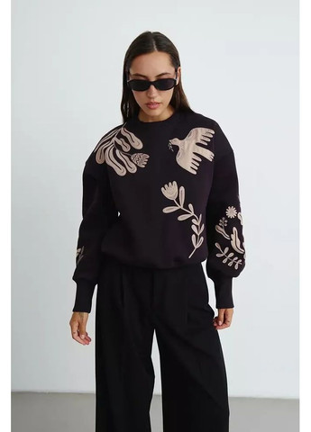 КОМЕНТАР СТИЛІСТА Жіночий костюм-двійка від бренду KAPTSOVA складається зі світшота та прямих брюк. Силует прямий, комфортний, що забезпечує зручність у щоденному використанні. Матеріал – трикотаж із високою еластичністю (65% ангора, 32% віскоза). Тканина м’яка, приємна на дотик, добре тримає форму, не просвічує. Після прання зберігає колір та текстуру, при правильному догляді не деформується. Світшот з широкими рукавами ¾, подовженою спинкою та V-подібним вирізом із декоративним відкладним коміром. Брюки з високою посадкою, прямого крою, на комфортній еластичній гумці. Є кишені, що додають практичності. Довжина брюк – повна. Костюм підходить для повсякденного використання, прогулянок, роботи в офісі у неформальному стилі та відпочинку. Ідеально комбінується з кросівками, мокасинами чи класичними черевиками. Модель відповідає стандартній українській розмірній сітці. Ви можете легко визначити свій розмір, вимірявши сантиметровою стрічкою груди і поділивши це значення на 2 – це буде ваш розмір. Фактичні заміри по виробу: Верх Плечі: 42 – 33 см, 44 – 34 см, 46 – 36 см, 48 – 38 см, 50 – 40 см, 52 – 41 см Обхват грудей: 42 – 108 см, 44 – 112 см, 46 – 118 см, 48 – 124 см, 50 – 130 см, 52 – 134 см Обхват низу: 42 – 106 см, 44 – 110 см, 46 – 112 см, 48 – 112 см, 50 – 114 см, 52 – 116 см Обхват рукава: 42 – 78 см, 44 – 80 см, 46 – 80 см, 48 – 80 см, 50 – 80 см, 52 – 82 см Довжина рукава: 42 – 36 см, 44 – 37 см, 46 – 37 см, 48 – 37 см, 50 – 37 см, 52 – 38 см Довжина виробу (перед): 42 – 48 см, 44 – 50 см, 46 – 53 см, 48 – 56 см, 50 – 60 см, 52 – 62 см Довжина виробу (зад): 42 – 58 см, 44 – 60 см, 46 – 63 см, 48 – 66 см, 50 – 70 см, 52 – 72 см Низ Обхват талії: 42 – 76 см, 44 – 80 см, 46 – 84 см, 48 – 88 см, 50 – 90 см, 52 – 92 см Обхват стегон: 42 – 124 см, 44 – 128 см, 46 – 132 см, 48 – 136 см, 50 – 138 см, 52 – 140 см Довжина штанини: 42 – 106 см, 44 – 107 см, 46 – 108 см, 48 – 109 см, 50 – 109 см, 52 – 110 см Крок: 42 – 78 см, 44 – 79 см, 46 – 80 см, 48 – 81 см, 50 – 81 см, 52 – 82 см Рекомендації по догляду: делікатне ручне прання у холодній або теплій воді (30 °C) прати окремо або з подібним одягом не використовувати відбілювачі віджимати вручну, без скручування сушити у розкладеному вигляді, у тіні не сушити в машинці чи на батареї прасувати навиворіт при 110–150 °C для вишивки – прасувати через бавовняну тканину за потреби — хімчистка дотримуватись інструкцій на етикетці