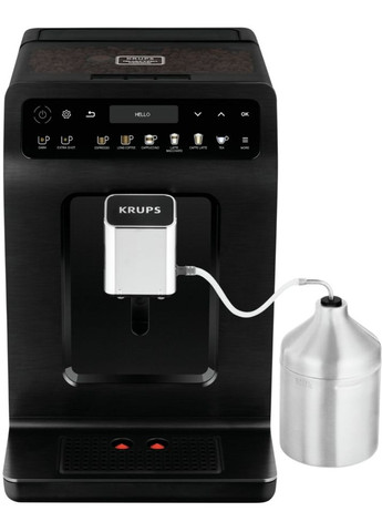Оскільки важлива кожна деталь, компанія Krups розробила лінію автоматичних еспресо-кавомашин Evidence, в яких елегантність дизайну ідеально поєднується з технологіями, щоб можна було насолоджуватися ідеальним смаком еспресо вдома. Завдяки 15 попередньо встановленим рецептам автоматична еспресо-машина Krups пропонує всі улюблені напої: від ароматного еспресо до капучино, приготованого простим дотиком, двох порцій смачної кави лате, приготованих одночасно, та напоїв на основі чаю зі змінною температурою налаштування. Високоефективна та інноваційна кольорова сенсорна панель керування. Надзвичайна простота у використанні. Чітке зображення під будь-яким кутом огляду завдяки OLED-дисплею. Сенсорні кнопки для миттєвого доступу до ваших напоїв. Багатий і насичений аромат, що створює незабутні моменти. Кожен знайде собі напій до смаку: 15 попередньо запрограмованих рецептів з можливістю додаткового налаштування. 7 напоїв на основі чорної кави: Еспресо, Подвійний еспресо, Велика кава, Подвійна порція великої кави, Рістрето, Американо, Допіо. 5 напоїв на основі кави з молоком: Капучино, Подвійний капучино, Лате мак'ято, Подвійний лате мак'ято, Молочна піна. 3 налаштування температури для 3 типів чаю: Зелений, Чорний, Трав'яний. KRUPS представляє технологію Quatro Force. Досконалість, яку можна відчути за смаком. Результатом оптимізації кожного ключового етапу в процесі приготування еспресо (від перемелювання до, власне, приготування) є насичений смак напою, що задовольнить навіть найвибагливіших любителів кави. Обслуговування та очищення приладу при цьому просте як ніколи. Просте обслуговування для тривалого ефекту. Автоматичне промивання циклів приготування для бездоганної гігієнічності: повне внутрішнє просушування циклу приготування кави після кожного приготування (завдяки системі Autoclean). Ручні програми для ретельного очищення: 1) програма очищення циклу приготування кави з використанням тільки однієї таблетки тричі на рік; 2) програма очищення від накипу з використанням пакетика спеціального засобу. Особливості кавоварок KRUPS. Металеві жорна, виготовлені у Швейцарії. Кавоварки KRUPS випускають у Франції. KRUPS забезпечує можливість ремонту пристрою протягом 10 років.