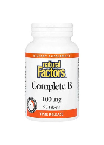 Комплекс вітамінів групи B 100 мг Complete B Natural Factors, 90 таблеток Комплекс вітамінів групи B 100 мг Complete B від Natural Factors — це збалансований комплекс, який забезпечує повноцінну підтримку нервової системи, енергетичного обміну та загального здоров’я організму. Вітаміни групи B відіграють ключову роль у підтримці нормального функціонування мозку, синтезі енергії, метаболізмі білків, жирів і вуглеводів. Цей комплекс допомагає знизити втому, покращує роботу серця, шкіри та волосся, а також підтримує здоров’я імунної системи. Продукт ідеально підходить для людей з підвищеним навантаженням, стресом, а також для тих, хто бажає підтримати оптимальний рівень вітамінів B у раціоні. Таблетки легко приймати завдяки зручному дозуванню та високій біодоступності компонентів. Тіамін (вітамін B1) – 100 мг для підтримки нервової системи. Рибофлавін (вітамін B2) – 100 мг для енергетичного обміну. Ніацин (нікотинамід) – 100 мг для здоров’я шкіри та травлення. Вітамін B6 – 100 мг для нормалізації метаболізму амінокислот. Фолієва кислота – 680 мкг DFE для підтримки кровотворення. Вітамін B12 (метилкобаламін) – 100 мкг для нервової системи. Біотин (вітамін B7) – 300 мкг для здоров’я шкіри та волосся. Пантотенат кальцію – 100 мг для синтезу гормонів і енергії. Холін – 84 мг для підтримки мозку. Кальцій – 80 мг для зміцнення кісток. Інозитол і параамінобензойна кислота – по 100 мг для додаткової підтримки здоров’я. Склад продукту: Тіамін (гідрохлорид), рибофлавін (вітамін B2), ніацин (нікотинамід), вітамін B6 (піридоксин гідрохлорид), фолієва кислота, вітамін B12 (ціанокобаламін), біотин, пантотенат кальцію, холін (бітарат), кальцій (дикальцій фосфат, пантотенат кальцію), інозитол, параамінобензойна кислота. Допоміжні інгредієнти: мікрокристалічна целюлоза, оболонка (камедь целюлози, карагенан), гліцерин, стеаринова кислота, стеарат магнію (рослинного походження). Рекомендації щодо застосування: Приймати по 1 таблетці на день під час їжі або за призначенням лікаря. Не перевищувати рекомендовану дозу. Перед застосуванням вагітним, годуючим жінкам та особам із хронічними захворюваннями рекомендується консультація з лікарем.