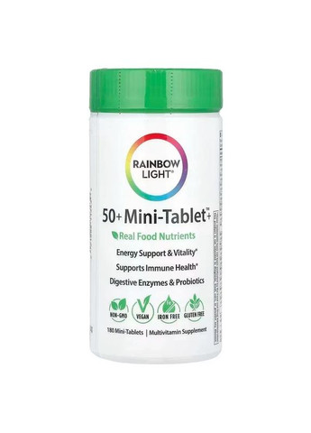 Комплекс вітамінів Food-Based Multivitamin Rainbow Light 50+, 180 міні таблеток Food-Based Multivitamin 50+ від Rainbow Light — це спеціалізований комплекс вітамінів і мінералів, розроблений для підтримки здоров'я чоловіків і жінок віком від 50 років. Продукт містить ретельно підібраний набір нутрієнтів, які допомагають компенсувати вікові потреби організму, підтримують імунну систему, здоров’я серця, кісток та мозку. Формула збагачена натуральними екстрактами, антиоксидантами, вітамінами групи B, вітаміном D3, кальцієм, магнієм, цинком, а також спеціальними рослинними компонентами для підтримки енергії та життєвого тонусу. Міні-таблетки легко ковтати, вони не містять штучних барвників, ароматизаторів, глютену та підходять для вегетаріанців. Цей комплекс стане надійною основою щоденного догляду за здоров’ям для людей старшого віку, які прагнуть зберегти активність, ясність розуму та гарне самопочуття. Ключові переваги: Підтримка здоров’я після 50: Формула враховує вікові потреби організму, допомагає зберігати енергію та життєвий тонус. Зміцнення імунітету: Вітаміни C, D3, цинк та антиоксиданти сприяють захисту організму від інфекцій. Підтримка серцево-судинної системи: Комплекс містить фолієву кислоту, B6, B12, магній і калій, які позитивно впливають на серце та судини. Здоров’я кісток та суглобів: Вітамін D3, кальцій і магній сприяють зміцненню опорно-рухового апарату. Покращення когнітивних функцій: Вітаміни групи B та екстракти рослин підтримують пам’ять, концентрацію та ясність мислення. Вегетаріанська формула: Не містить глютену, молочних продуктів, штучних добавок. Рекомендації щодо застосування: Дорослим рекомендується приймати по 2 міні-таблетки щодня під час їжі або за рекомендацією лікаря. Не перевищуйте зазначену дозу. Для досягнення максимального ефекту бажано приймати регулярно. Протипоказання: Не рекомендується особам з індивідуальною чутливістю до компонентів продукту. Перед початком прийому проконсультуйтеся з лікарем, особливо якщо маєте хронічні захворювання, приймаєте лікарські засоби, вагітні чи годуєте груддю. Умови зберігання: Зберігайте у сухому, прохолодному місці, недоступному для дітей. Не допускайте потрапляння прямих сонячних променів та вологи. Після відкриття щільно закривайте упаковку. Де придбати: Придбати Food-Based Multivitamin 50+ від Rainbow Light можна лише в інтернет-магазині Djini. Переваги покупки в нашому магазині: Оригінальна продукція з гарантією якості. Швидка та надійна доставка по всій Україні. Зручні способи оплати для вашого комфорту. Професійні консультації щодо вибору добавок та вітамінів. Вигідні акції та спеціальні пропозиції для постійних клієнтів. Піклуйтеся про своє здоров’я після 50 років разом із Food-Based Multivitamin Rainbow Light! Замовляйте якісний вітамінний комплекс у Djini та забезпечте собі активне довголіття, енергію й гарне самопочуття щодня.