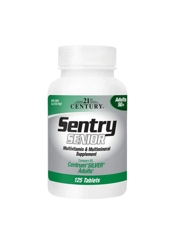 21st Century Sentry Senior Adults 50+ — це комплексна щоденна мультивітамінно-мультимінеральна добавка, спеціально розроблена для підтримки унікальних потреб здоров'я та самопочуття дорослих віком від 50 років. Переваги продукту: Підтримка загального здоров'я та самопочуття Зміцнення імунної системи Підтримка здоров'я серця та кісток Склад на порцію (1 таблетка): Вітаміни: Вітамін A (ацетат, 40% як бета-каротин): 750 мкг Вітамін C (аскорбінова кислота): 60 мг Вітамін D3 (холекальциферол): 25 мкг (1000 МО) Вітамін E (dl-альфа токоферил ацетат): 22,5 мг Вітамін K (фітонадіон): 30 мкг Вітамін B1 (тіамін мононітрат): 1,5 мг Вітамін B2 (рибофлавін): 1,7 мг Ніацин (ніацинамід): 20 мг Вітамін B6 (піридоксин HCl): 3 мг Фолат: 667 мкг DFE (400 мкг фолієвої кислоти) Вітамін B12 (ціанокобаламін): 25 мкг Біотин: 30 мкг Пантотенова кислота (d-кальцій пантотенат): 10 мг Мінерали: Кальцій (карбонат кальцію, дикальцій фосфат): 220 мг Фосфор (дикальцій фосфат): 20 мг Йод (калію йодид): 150 мкг Магній (оксид магнію): 50 мг Цинк (оксид цинку): 11 мг Селен (селенат натрію): 19 мкг Мідь (сульфат міді): 0,5 мг Марганець (сульфат марганцю): 2,3 мг Хром (піколінат хрому): 50 мкг Молібден (молібдат натрію): 45 мкг Хлорид (хлорид калію): 72 мг Калій (хлорид калію): 80 мг Додаткові компоненти: Лютеїн: 250 мкг Лікопін: 300 мкг Рекомендації щодо вживання: Приймайте по одній таблетці щодня під час їжі або запиваючи склянкою води. Не перевищуйте рекомендовану дозу. Застереження: Перед початком прийому добавки проконсультуйтеся з лікарем, особливо якщо у вас є хронічні захворювання або ви приймаєте інші ліки. Зберігайте в недоступному для дітей місці. Обирайте 21st Century Sentry Senior Adults 50+ для підтримки вашого здоров'я та життєвої енергії після 50 років.