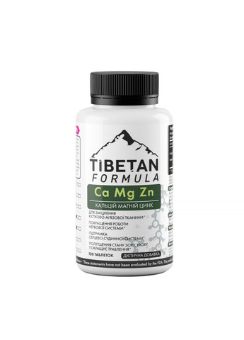 стабілізує нервову систему, зміцнює кістково-мязову тканину, допомагає зняти судоми в мязах, покращує стан серцевого мяза служить чудовою профілактикою серцево-судинних захворювань, сприяє покращенню стану зору, нюху, покращує травлення. Сстабілізує обмін речовин в організмі в цілому. Дієтична добавка «Кальцій Магній Цинк» завдяки комплексу найважливіших для організму мікроелементів діє відразу на багато систем організму і дозволяє набути здоровя. Містить мікроелементи, які повинні постійно надходити в організм, тому що беруть участь у роботі багатьох систем організму. Одні з найважливіших мінералів для нашого організму. Ці мікроелементи відіграють ключову роль у зміцненні кісткової тканини та профілактиці остеопорозу (захворювання, при якому кістки втрачають свою міцність, стають більш крихкими і можуть легко ламатися). гормону кальцитону, який регулює транспорт кальцію та забезпечує його захоплення кістковою тканиною. Але спільний прийом кальцію і магнію необхідний не тільки для того, щоб підвищити мінеральну щільність кісткової тканини. Усі три елементи життєво необхідні для людського організму: сприяють стабілізації артеріального тиску, підтримують у справності функцію нервової системи та мязів. Цинк відіграє незамінну роль у підвищенні захисної здатності імунної системи, стимулює функцію сальних залоз, покращує стан передміхурової залози. Роль цих мінералів неоціненна для здоровя кісток Кальцій та магній Їх спільний прийом необхідний для позбавлення від судом литкових мязів. Склад: кальцій, магній, цинк. Рекомендації щодо застосування: по 1 таблетці 2-3 десь у день під час їжі протягом 1 місяці. Повторити курс за необхідності. Перерва між курсами не менше 30 днів. Не є лікарським засобом. Пропоновані схеми лікування та профілактики найпоширеніших станів від валеологів Тібетської формули Дуйко А. А.) Умови зберігання: зберігати в герметично закритій упаковці при температурі 20-25º С. Берегти від надмірного нагрівання та охолодження. Не містить ГМО, штучних барвників, консервантів, цукру, лактози, алкоголю. Термін зберігання: 12 місяців Якість гарантуємо !!!