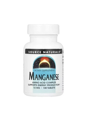 Марганець Manganese 10 мг Source Naturals, 100 таблеток Марганець — важливий мінерал, який виконує ключові функції в організмі, зокрема бере участь у виробництві енергії, формуванні кісток та синтезі життєво важливих біохімічних речовин, таких як колаген і протромбін. Переваги та призначення: Підтримує нормальний обмін речовин та енергетичний баланс. Сприяє формуванню та розвитку кісткової тканини. Допомагає у синтезі колагену, важливого для здоров’я суглобів і шкіри. Покращує захисні антиоксидантні системи організму, будучи кофактором для супероксиддисмутази. Склад у порції (1 таблетка): Марганець (у вигляді комплексу амінокислот) — 10 мг (435% добової норми) Інгредієнти: Сорбітол, стеаринова кислота, кремній, модифікована целюлоза, магнію стеарат. Рекомендації щодо застосування: Приймайте по 1 таблетці на добу. Не перевищуйте рекомендовану дозу. Протипоказання: Індивідуальна непереносимість компонентів. Вагітність і лактація — консультація лікаря обов’язкова.