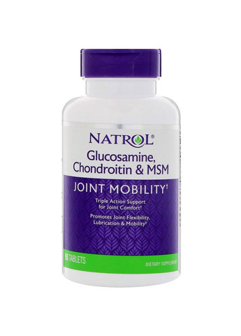 Глюкозамін хондроїтин МСМ Glucosamine Chondroitin MSM Natrol 90 таблеток Глюкозамін хондроїтин МСМ від Natrol — це високоякісна харчова добавка, розроблена для підтримки здоров'я суглобів та їхньої гнучкості. Поєднання глюкозаміну, хондроїтину та метилсульфонілметану (МСМ) сприяє покращенню змащування суглобів, зменшенню запальних процесів і запобігає руйнуванню хрящової тканини. Ключові переваги: Здоров'я суглобів: Глюкозамін підтримує відновлення хрящової тканини, знижуючи ризик пошкоджень. Покращення гнучкості: Хондроїтин змащує суглоби, підвищуючи їхню амортизаційну функцію. Зменшення запалення: МСМ допомагає зменшити запальні процеси та біль у суглобах. Рекомендоване застосування: Приймати по 1 таблетці тричі на день під час їжі або за рекомендацією лікаря. Склад: Компонент Кількість в порції Натрій (хондроїтинсульфат натрію) 28 мг Глюкозаміну гідрохлорид 500 мг Хондроїтин сульфат (500 мг хондроїтин сульфату натрію) 350 мг МСМ (метилсульфонілметан) 83 мг Інші інгредієнти: мікрокристалічна целюлоза, стеаринова кислота, повідон, містить 2 відсотки або менше (целюлозна камедь, гліцерин, магнію стеарат, метилцелюлоза, діоксид кремнію). Містить: ракоподібні (краби та креветки). Не містить: дріжджів, молочних прідуктов, яєць, глютену, сої, пшениці, цукру, крохмалю, консервантів, ароматизаторів або барвників. Протипоказання: Перед застосуванням проконсультуйтеся з лікарем, особливо якщо ви вагітні, годуєте груддю, маєте алергію на морепродукти або приймаєте інші лікарські засоби. Не перевищуйте рекомендовану дозу. Умови зберігання: Зберігати в сухому, прохолодному місці, недоступному для дітей. Не використовувати, якщо захисна плівка пошкоджена або відсутня. Де придбати: Придбати Глюкозамін хондроїтин МСМ можна в інтернет-магазині . Переваги покупки в нашому магазині: Швидка доставка по всій Україні. Гарантія якості товарів від провідних брендів. Безпечні та зручні способи оплати. Консультації експертів щодо вибору добавок та вітамінів. Часті акції та знижки для постійних клієнтів. Зміцніть свої суглоби з Глюкозамін хондроїтин МСМ від Natrol!
