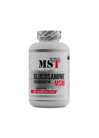 Комплекс для суглобів Glucosamine Chondroitin + MSM + Hyaluronic Acid MST 180 таблеток Glucosamine Chondroitin + MSM + Hyaluronic Acid MST — потужний хондропротекторний комплекс, створений для захисту, живлення та відновлення суглобів. Формула містить глюкозамін, хондроїтин, метилсульфонілметан (MSM), гіалуронову кислоту та L-пролін — ключові компоненти для збереження рухливості та зменшення запалення в суглобах. Основні характеристики: Форма випуску: таблетки Кількість у упаковці: 180 таблеток (60 порцій) Рекомендоване дозування: 3 таблетки на день Поживна цінність на порцію (3 таблетки): Глюкозамін сульфат (з глюкозаміну сульфату дикалію хлориду 2КСІ) – 1500 мг - з них глюкозаміну сульфату – 1131 мг - з них глюкозаміну – 888 мг Метилсульфонілметан (MSM) – 1200 мг Хондроїтину сульфат – 1200 мг Гіалуронат натрію – 63,6 мг (з них гіалуронова кислота – 60 мг) L-пролін – 45 мг Склад: Глюкозамін сульфат дикалій хлорид (2КСІ) (ракообразні), натрій хондроїтину сульфат (бичий), метилсульфонілметан, мікрокристалічна целюлоза, магнієві солі жирних кислот, діоксид кремнію, гіалуронат натрію, L-пролін. Рекомендації щодо застосування: Приймайте по 3 таблетки щодня після сніданку, запиваючи 200 мл води. Переваги продукту: Сприяє зменшенню болю у суглобах і поліпшенню їх рухливості Містить високі дози глюкозаміну, хондроїтину та MSM Підсилений гіалуроновою кислотою для покращення змащення суглобів L-пролін підтримує формування колагену та структурної тканини Підходить спортсменам і людям з підвищеним навантаженням на опорно-руховий апарат Забезпечте свої суглоби потужною підтримкою з MST — щоденний захист і відновлення!