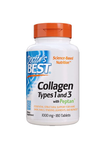 Властивості продукту: Підтримує еластичність та пружність шкіри Сприяє зволоженню шкіри Підтримує здоров'я шкіри Підтримує здоровий метаболізм Сприяє контролю ваги Підтримує здоров'я та рухливість суглобів Допомагає зміцненню кісткової тканини Підтримує комфортний стан м'язів Сприяє відновленню м'язів після фізичних навантажень Підтримує здоров'я та цілісність сухожиль і зв'язок Підтримує імунну систему Підтримує високий рівень енергії та життєвого тонусу Показання до застосування Приймати 3 таблетки 2 рази на день на порожній шлунок мінімум за 30 хвилин до їди або за рекомендацією фахівця. Що це? Колаген від Doctor's Best містить чистий колагеновий білок, ферментативно гідролізований в складових амінокислот для оптимального використання організмом. Колаген типів 1 і 3 допомагає підтримувати здоровими і міцними волосся, шкіру, нігті, сухожилля, зв'язки і кістки. Як це працює? Колаген складає четверту частину всього білка в організмі. Насамперед він піклується про шкіру, сприяючи її омолодженню та підтримці еластичності та пружності якомога довше. Також колаген позитивно впливає на обмінні процеси організму. Це означає, що цей білок сприяє позбавленню від зайвих кілограмів. Колаген утворює молекулярні сполуки, які в свою чергу зміцнюють сухожилля та підтримують м'язи, що тримають внутрішні органи. Кістки і зуби сформовані шляхом змішування мінеральних кристалів з колагеном. Також він захищає м'які тканини, поєднуючи їх зі скелетом. Колаген забезпечує рухливість і гнучкість суглобів, міцність нігтів, пружність шкіри. Людський організм виробляє колаген природним шляхом, але з віком вироблювана кількість знижується, що призводить до появи зморшок і зменшення еластичності шкіри. Саме тому колаген такий важливий. Після відкриття оздоровчих ефектів колагену, цей препарат зайняв одне з перших місць в світі косметики, біодобавок і спорт харчування. Елемент Вага Одиниця Процент Порція 3 Таблетки Порцій в упаковці 60 Калорії 10 Протеїн 3 мг Вітамін С (аскорбінова кислота) 30 мг 33 Колаген типів 1 і 3 3 (3000) г (мг)