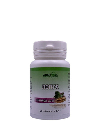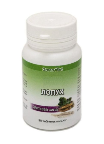 Природа наділила лопух воістину незвичайними цілющими властивостями. Традиційна медицина високо цінує цю рослину що зціляє недуги від грипу до геморою, а наукова медицина підтверджує терапевтичні можливості результатами проведених досліджень. Харчові та лікувальні властивості коренів лопуха відомі людству давно. За харчовою цінністю коріння перевершують моркву, петрушку і пастернак разом узяті, а унікальні лікувальні властивості визначаються хімічним складом рослини: полісахарид інулін, ефірні барданові і жирні олії, дубильні речовини, фітостерини, гіркоти, протеїн, глікозид арктіін, слиз, рослинні волокна, аспарагін, рутин, каротин, вітаміни: Е, K, С, B1, B2, B5, B6, B9 (фолієва кислота), PP (нікотинова кислота); мінерали: Ca, K, Mg, Na, P, Zn, G, Cu, Mn, Se. Лопух виступає надійним коректором обміну речовин, покращує склад крові, володіє кровоочисними властивостями. Доведено протизапальні та протиалергічні властивості коренів. Показання до застосування Рекомендується як загальнозміцнюючий засіб профілактики обмінних порушень, а також до раціону харчування при наступних станах та захворюваннях: - остеохондроз, артрити, артрози, подагра, суглобовий ревматизм; - цистити, нирковокам'яна хвороба (оксалати, урати, фосфати), сечокислий діатез; - цукровий діабет; панкреатит; - захворювання шлунково-кишкового тракту (гастрити, виразкова хвороба шлунка і 12-палої кишки, коліти), функціональні закрепи; - захворювання печінки, жовчного міхура; жовчнокам'яна хвороба; - алергози (як кровоочисний, десенсибілізуючий засіб); - простудні захворювання (як засіб прискорення одужання); - шкірні захворювання; дерматити, фурункульоз, екземи, псоріаз, себорея, випадання волосся. Спосіб застосування: по 2 таблетки 2-3 рази на день за 30 хвилин до прийому їжі. Курс прийому: лікувально-профілактичний курс 8-12 тижнів. При потребі повторити. Застереження: У разі вагітності, годування груддю, прийому медичних препаратів або наявності будь-яких захворювань слід проконсультуватися з лікарем перед вживанням харчових добавок. У разі виникнення побічних реакцій припиніть використання та проконсультуйтеся з лікарем. Зберігати в недоступному для дітей місці. Не використовувати, якщо зовнішня захисна мембрана відсутня або пошкоджена. *** Виробник залишає за собою право змінити зовнішній вигляд упаковки, склад та/або консистенцію продукту. **** БАД не є лікарським засобом!