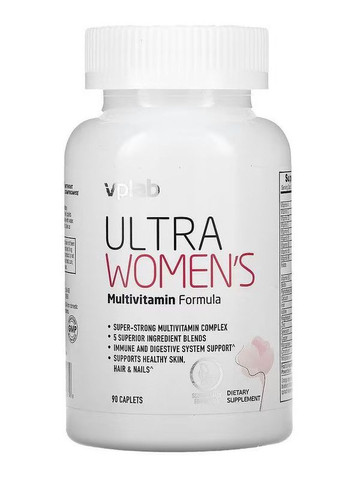 Опис: VPLAB Ultra Women's Multivitamin Formula – оптимально підібраний комплекс, що містить понад 50 активних інгредієнтів. Розроблено з урахуванням особливостей жіночої фізіології для дійсно активного способу життя на тлі повсякденного стресу. Ефекти, за які жінки цінують цей комплекс: джерело необхідних вітамінів та мінералів в одній таблетці, проста турбота про здоров'я; приплив сил із самого ранку та бадьорість протягом усього дня; енергія та захопленість для роботи, спорту, інтересів, сім'ї, коханих та друзів; свіжий колір обличчя, сильне здорове волосся без ламкості та випадання, міцні нігті; позитивний настрій та концентрація уваги замість звичної втоми; здоровий режим сну та легке пробудження; профілактика сезонних інфекцій та вірусів. Комплекс включає 5 основних сумішей і спеціалізовані добавки для відмінного самопочуття та квітучого зовнішнього вигляду: Ultra Blend – комплекс вітамінів групи В для підтримки нервової системи, звільнення енергії з білків, жирів та вуглеводів, припливу сил: В1 (тіамін), В2 (рибофлавін), В3 (РР, ніацин), В5 (пантотенова кислота), В6, В7 (біотин), В9 (фолієва кислота), В12. Вітаміни А, З, D3, K1 зміцнюють імунітет. Біотин та вітамін Е підтримують здоров'я шкіри, цинк зміцнює нігті, селен посилює ріст волосся. Також у складі кальцій, залізо, йод, магній, цинк, селен, мідь, марганець, хром, молібден. Fruit & Vegetable Power Blend – суміш екстрактів рослин та фруктів: порошок апельсинової кірки, порошок ягід асаї, порошок ягід чорниці, порошок насіння гранату, порошок броколі, порошок листя шпинату, порошок помідора, порошок ягід бузини. Природні антиоксиданти борються з окислювальними процесами в організмі та уповільнюють процеси старіння. Beauty Blend: екстракт шкірки винограду - природний антиоксидант, альфа ліпоєва кислота - підвищує чутливість до інсуліну і допомагає регулювати рівень цукру в крові і контролювати апетит (цей ефект посилює екстракт зеленого чаю, що входить до складу). Memory Blend – холін, інозитол, кремній. Комплекс для покращення пам'яті, уваги та когнітивних функцій. Flexiblend – гіалуронова кислота та колаген відновлюють суглоби, зменшують кількість зморшок, повертають шкірі пружність та еластичність. Лютеїн та зеаксантин для здоров'я зору. Лікопін – антиоксидант, у тому числі, що покращує стан шкіри та волосся. Астаксантин – антиоксидант, що знижує окисний стрес, у тому числі у курців та людей з надмірною вагою. Особливості VpLAb Ultra Women's Multivitamin Formula №90: • Препарат має складний склад та специфічний запах вітамінів. • Препарат бадьорить. Рекомендується прийом у першій половині дня, щоб не порушувати режим сну. • Зміна кольору сечі в період прийому комплексу пов'язана з метаболізмом вітамінів групи B, це абсолютно нормально і не повинно викликати занепокоєння. • Зверніть увагу, у складі комплексу є залізо в обсязі, покликаному заповнити втрати цього елемента під час менструації. Якщо ви знаходитесь у періоді менопаузи, проконсультуйтеся зі спеціалістом. • Протипоказання: індивідуальна нестерпність компонентів продукту. Перед застосуванням рекомендується проконсультуватись із лікарем. • Товар сертифікований. Застосування: 1 або 2 таблетки на день у першій половині дня після їжі, запиваючи водою. Рекомендується починати прийом з однієї таблетки, додавати другу при підвищених навантаженнях, частих важких тренуваннях або, якщо прийом 