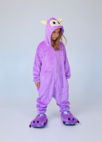 Капюшон з вушками та акуратною вишивкою очей підкреслює характер персонажа, а хвіст завершує милий силует. Фіолетовий колір гармонійно поєднується з домашніми капцями чи теплими шкарпетками. На фото капці використані для стилю, вони не входять у комплект.
