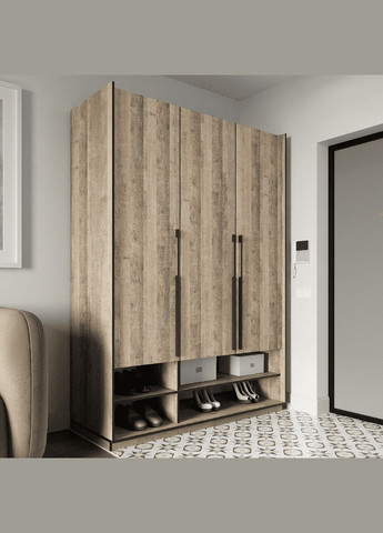 Розмір: ● Висота 210-250 см ● Глибина 57 см ● Ширина 196.8 см Вага: 174-263 кг Кольори: Антрацит, Аппалачі, Бетон, Білий, Венге темний, Сонома, Бетон темний, Бетон тефра, Дуб Гранж Пісочний, Дуб Кверкус, Зелений Димчастий, Кашемір Виробник: Moreli/Украина Опис: Шафа розпашна R-0009 від Moreli — елегантне і функціональне рішення для зберігання одягу та аксесуарів. Завдяки чотирьом дверцям, штанзі для одягу та містким полицям, вона дозволяє зручно організувати простір у гардеробі, спальні чи передпокої. Штанга для вішаків і полички забезпечують ефективне використання простору для різноманітних речей. Петлі з дотягувачем PremiumLine з 3D регулюванням гарантують плавне та безшумне закривання дверей. Телескопічні направляючі забезпечують зручність при відкриванні ящиків. Додатково можна встановити антресоль яка дозволяє організувати простір зверху шафи. Також одна або дві додаткові пари шухляд допоможуть організувати простір для дрібниць. Ніжки з регулюванням висоти дозволяють ідеально вирівняти шафу на будь-якій поверхні. Надійність, якість і стиль в кожній деталі!