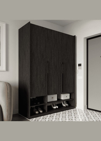 Розмір: ● Висота 210-250 см ● Глибина 57 см ● Ширина 196.8 см Вага: 174-263 кг Кольори: Антрацит, Аппалачі, Бетон, Білий, Венге темний, Сонома, Бетон темний, Бетон тефра, Дуб Гранж Пісочний, Дуб Кверкус, Зелений Димчастий, Кашемір Виробник: Moreli/Украина Опис: Шафа розпашна R-0009 від Moreli — елегантне і функціональне рішення для зберігання одягу та аксесуарів. Завдяки чотирьом дверцям, штанзі для одягу та містким полицям, вона дозволяє зручно організувати простір у гардеробі, спальні чи передпокої. Штанга для вішаків і полички забезпечують ефективне використання простору для різноманітних речей. Петлі з дотягувачем PremiumLine з 3D регулюванням гарантують плавне та безшумне закривання дверей. Телескопічні направляючі забезпечують зручність при відкриванні ящиків. Додатково можна встановити антресоль яка дозволяє організувати простір зверху шафи. Також одна або дві додаткові пари шухляд допоможуть організувати простір для дрібниць. Ніжки з регулюванням висоти дозволяють ідеально вирівняти шафу на будь-якій поверхні. Надійність, якість і стиль в кожній деталі!