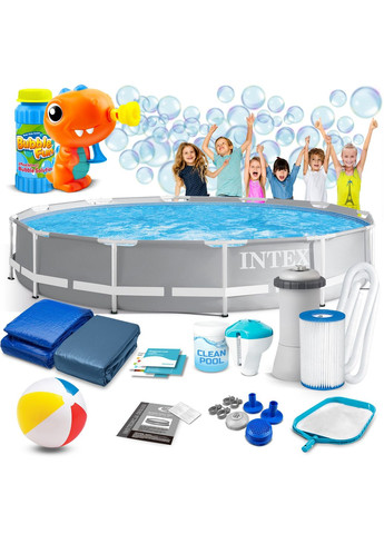 Басейн каркасний INTEX 26716 366 x 99 см 17in1 + машина для створення бульбашок. Основна відмінність, це те, що басейн укомплектований більш міцними профільованими овальними трубами каркаса, а не круглими. Басейн швидко встановлюється на горизонтальному гладкому майданчику. Для цього буде потрібно вирівняна поверхня ґрунту, бажана підсипка піску або попередня спеціальна підготовка ґрунту. Особливістю цієї моделі є достатня глибина 99 см при Такому порівняно невеликому діаметрі. Басейн зроблений з особливого ПВХ, що має шар скловолоконної сітки і 2 шари ПВХ. Цей матеріал вироблений за допомогою передової технології Super-Tough, істотно підвищує міцність. Каркас басейну, вироблений з оцинкованих міцних труб, захищений від іржі і розрахований на досить високі навантаження. Зручні сходи. Її міцні металеві стійки покриті якісною фарбою для тривалого запобігання від іржі. Картриджний насос-фільтр для циркуляційного очищення води, продуктивністю 2006 л/год, картридж - тип A. Днище забезпечено зливним зручним клапаном. До нього можливе під'єднання шланга, що відводить воду в потрібне місце. Басейн не укомплектований спеціальною підстилкою під днище і тентом-кришкою, які рекомендуємо придбати для більш якісного використання басейну. Басейн не оснащений скімером-системою поверхневого збору води на фільтрацію. Основним сприятливим відмінностям басейнів METAL FRAME Pool і Prism Frame Pool від наливних басейнів Easy Set є підвищена довговічність. Адже "каркасники" більш стійкі, в їх конструкції відсутні надувні елементи, які зменшують термін служби всього басейну. Так само, при однаковому внутрішньому діаметрі, наповнюваний обсяг води у наливних басейнів значно більше коштом випирають боків, а це означає, що витрати на очищення води теж істотно різні. Характеристики: Діаметр 366 см Висота 99 см Інформація Діаметр 366 x Висота 99 см Вага 41 кг Виробник Intex Висота сходів 107 см Гарантія не передбачена Зливний клапан Так Каркас оцинковані сталеві труби Колір сірий Країна-виробник Китай Матеріал тришаровий ПВХ: два шари ПВХ і шар скловолоконної сітки Насос - фільтр картриджний 2006 л/год Об'єм води 8503 л Розмір упаковки 46x40x116 см Серія PREMIUMPOOL SERIES Сходи Так Упаковка картонна коробка Форма Круглий