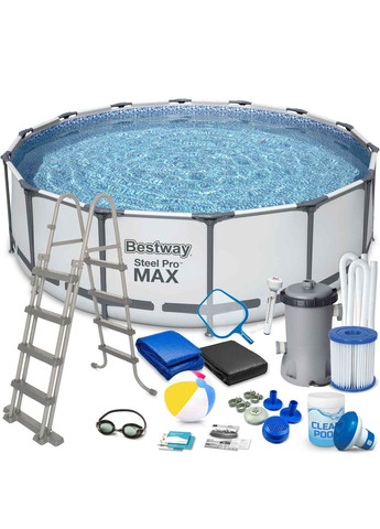 Басейн каркасний 18в1 Bestway 56438 - яскравий представник ринку домашніх басейнів. Модель відмінно підійде для сімейного відпочинку. Чаша басейну виконана з тришарового армованого лайнера. Покриття Framelink захищає каркас від іржі, гарантує високу надійність і довговічність всієї конструкції. Система Seal&Lock System забезпечує надійну фіксацію всіх елементів. Малюнок внутрішньої поверхні чаші виконаний у вигляді природної гальки. У комплекті з басейном поставляється захисний тент, сходи і фільтраційна установка, яка гарантує підтримку чистоти води протягом усього сезону купання, і змінний картридж для фільтра. Розміри басейну: діаметр 457 см, висота 122 см Об'єм басейну (90%): 16015 літрів Система фільтрації: 3028 л/год картриджна Встановлення: тільки наземне